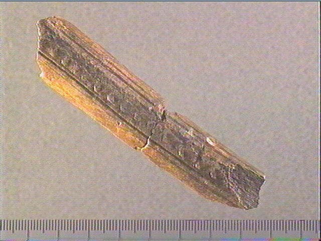 Sur la face supérieure, une rangée de tubercules est encadrée de rainures longitudinales.