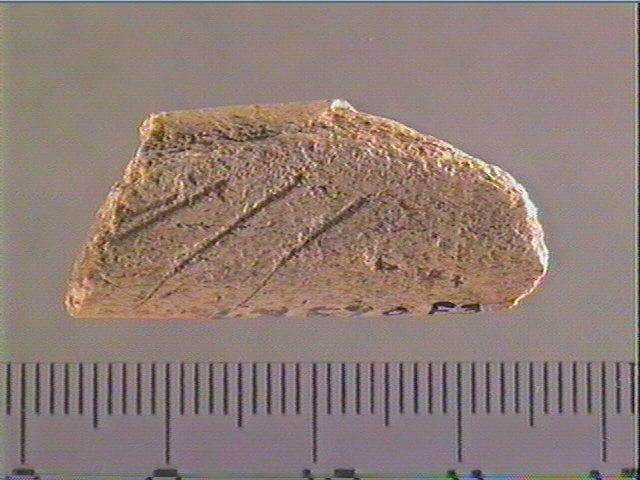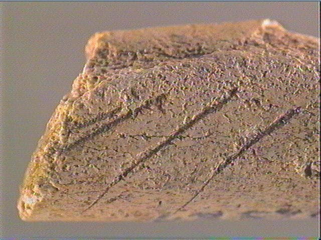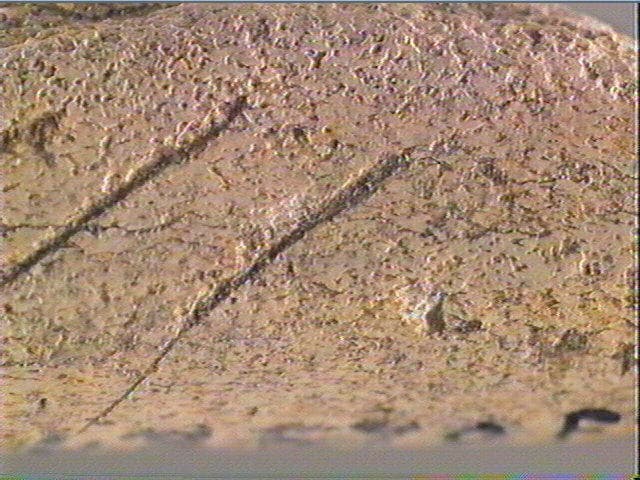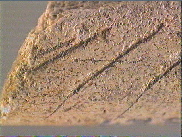 Sur la face supérieure, il reste trois stries obliques alignées.