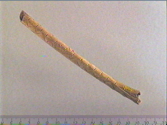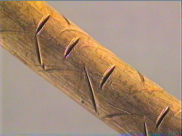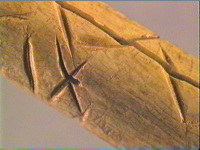 Double ligne brisée à l'intérieure de laquelle ont été gravées des stries transversales alignées. Croisillon.