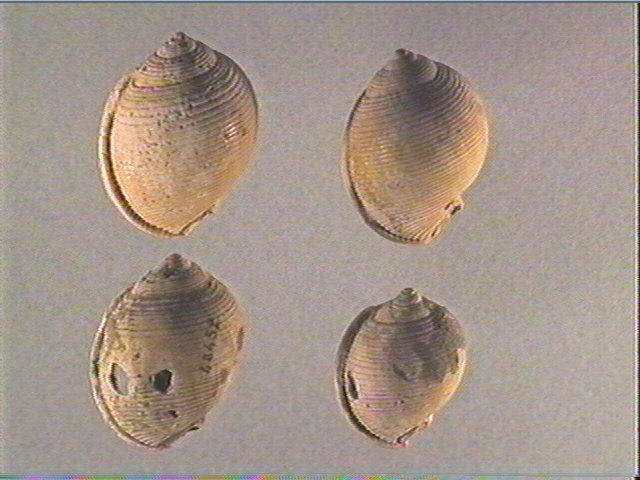 Lot de coquilles de cassis saburon. Cinq coquilles perforées dont une porte quatre perforations