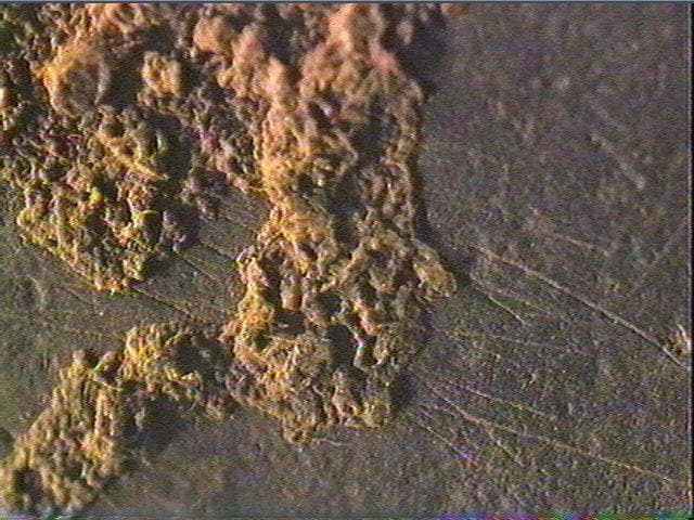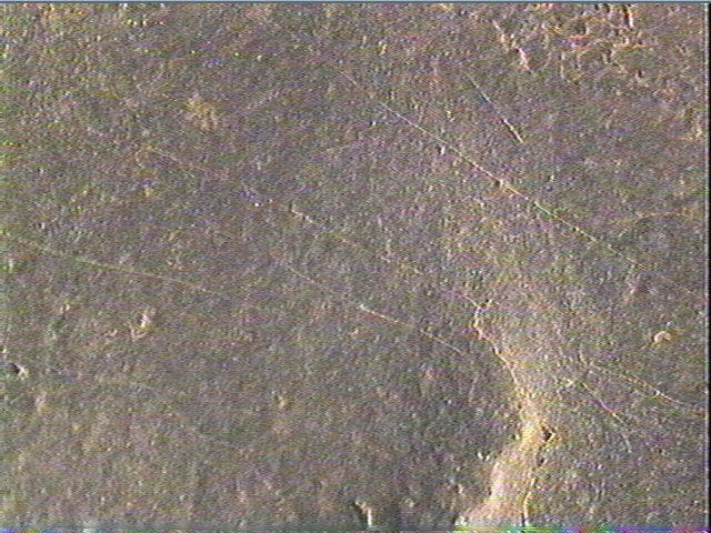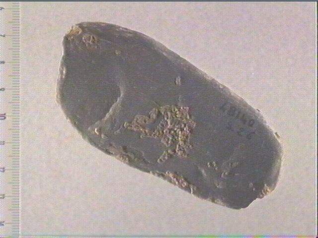 Sur les deux faces : nombreuses stries n'offrant pas la possibilité d'une détermination. Certaines sont occultées par des concrétions
