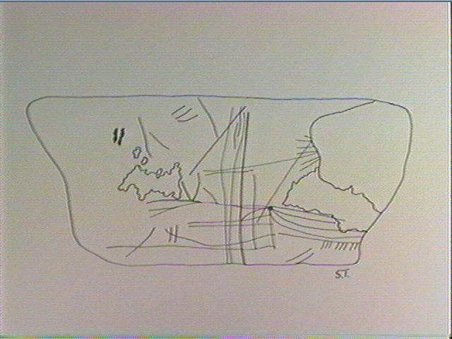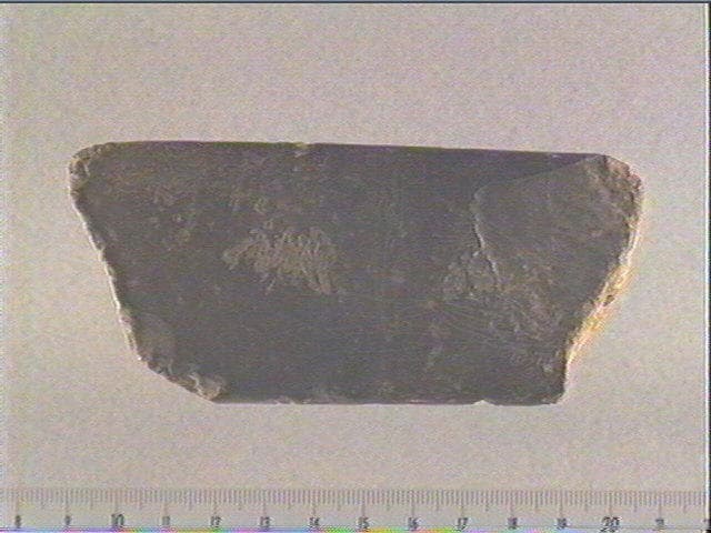 Sur une face, quelques incisions horizontales, transversales ou obliques, s'entrecroisant parfois