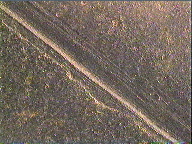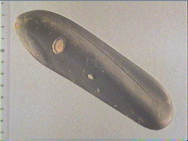 Rainurage longitudinal. Une longue rainure de chaque côté du galet.