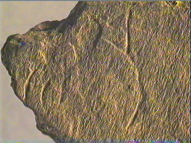 Sur une face, quelques traits courbes et obliques alignés