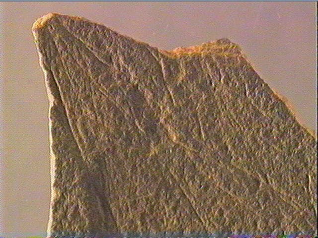Incision fine, incision en v dissymétrique. Les gravures sont peu nombreuses. Elles sont composées de traits continus ou discontinus qui traversent la plaquette dans sa largeur. Son état fragmentaire ne permet pas de distinguer d'élément figuratif