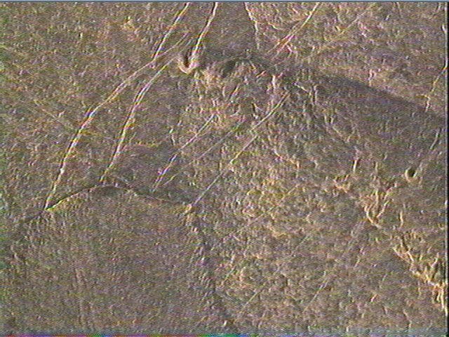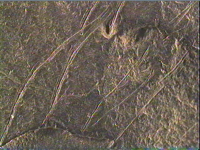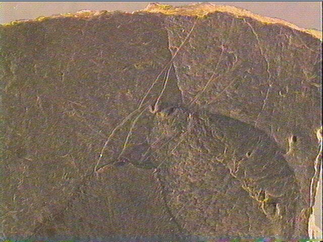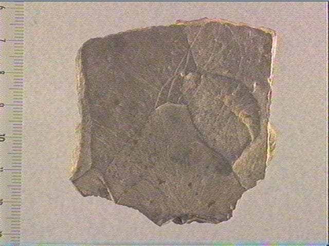 Incision fine, incision en u large, incision en v symétrique, incision en v dissymétrique. Les gravures sont peu nombreuses, ce sont des traits rectilignes ou courbes, continus ou discontinus, qui semblent converger vers la partie manquante de la surface. Le schiste s'est délité suivant son clivage naturel, ce qui a fortement endommagé la surface gravée