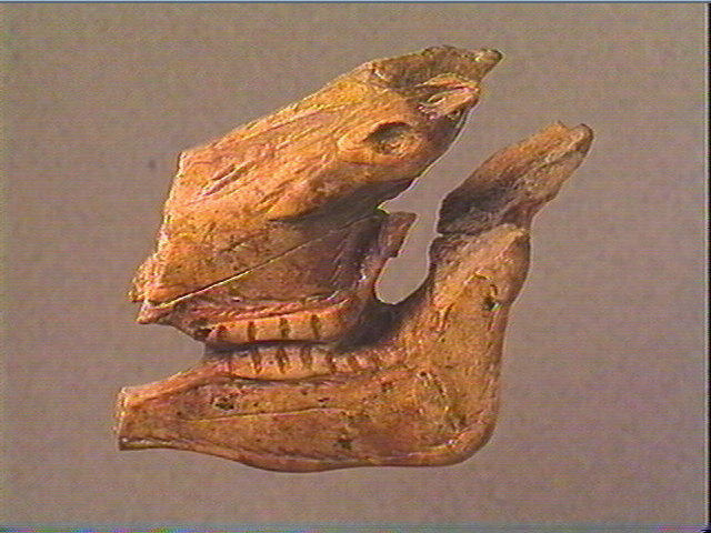 représentation animalière (cheval : tête) ; ornement (chevron)