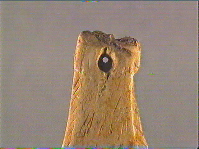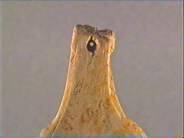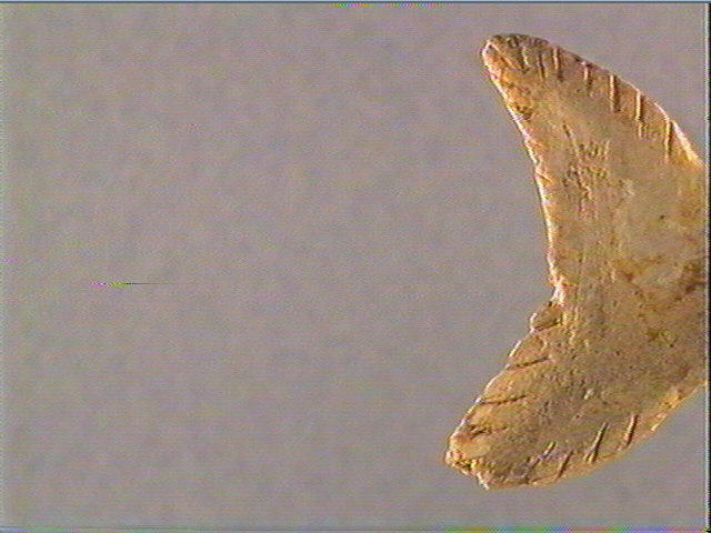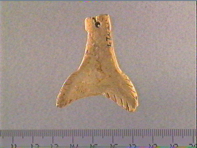 Perforation inachevée. Queue de poisson découpée et gravée, stries obliques