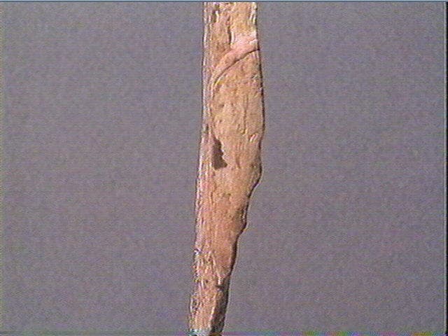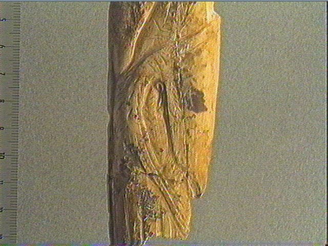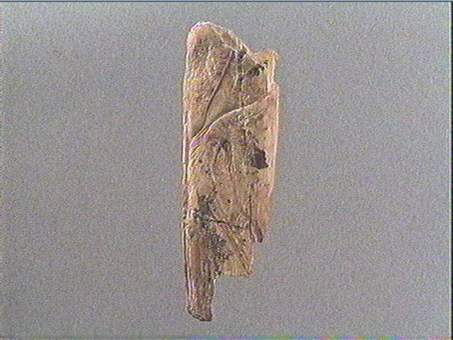 Incision en v dissymétrique.Tête assez abîmée et patte antérieure d'un cheval de profil à droite et arrière-train d'une jument dont les parties génitales et anales sont vues de face et minutieusement détaillées. H Breuil y verrait peut-être une scène de fécondité. Peut-être s'agit-il d'un seul et même animal dont le corps tourne autour de l'os (M. Chollot)