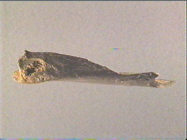 Pièce trouvée près de l'entrée de la grotte, dans une terre rougeâtre de 10 à 15 cm, sur un espace de 60 à 80 cm. L'objet se trouvait au niveau d'un foyer, immédiatement au-dessous d'une couche de péroxyde de fer, près des pièces 47426 et 48700 A. Selon Piette il s'agissait de l'assise des sculptures en relief.