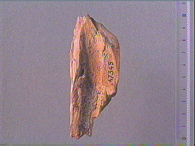 Des traces de mâchurage indiquent que cet os a servi postérieurement de retouchoir. Il est possible que ce fragment puisse être raccordé à l'objet 47035.