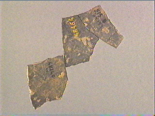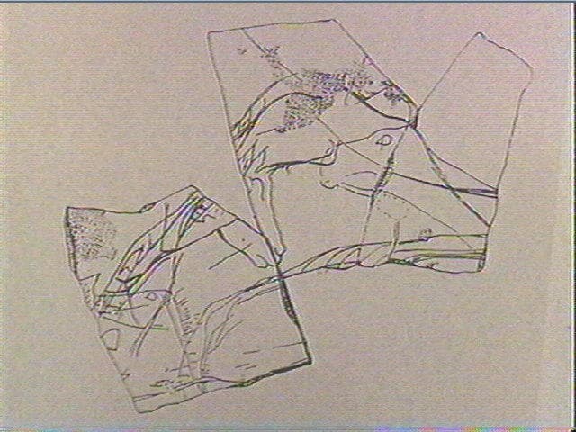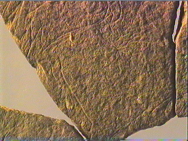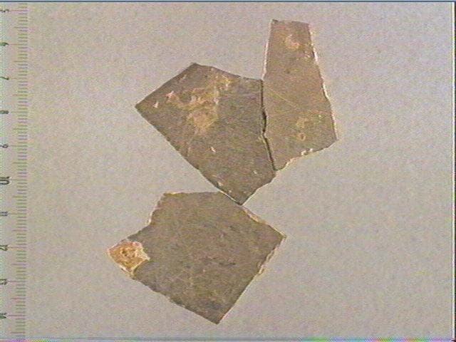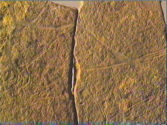 Incision fine, incision en v dissymétrique. Trois animaux sont gravés les uns au-dessous des autres, en alternance, de profil gauche, droit et gauche. Seuls, les têtes ont été figurées. Tête d'herbivore de profil gauche : front, oeil en amande, museau, bouche, joue soulignée, encolure, menton souligné. Tête d'isard de profil droit, situé au-dessous de la tête d'herbivore : deux cornes à l'extrémité recourbée, deux oreilles pointues et dressées, en arrière des cornes, oeil, chanfrein, museau, naseau, bouche, menton. Tête de cheval de profil gauche, situé au-dessous de la tête d'isard : encolure, crinière dressée, front, oeil ovalaire, chanfrein, museau, naseau, bouche, ganache. Il y aurait aussi peut-être, sur la gauche, l'arrière-train d'un autre animal de profil droit, avec une queue longue et la patte postérieure. De nombreux autres traits restent indéterminés