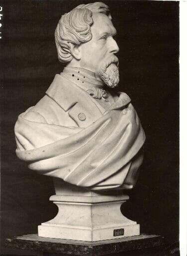 Portrait d'archéologue. Buste sculpté de Charles Louis Napoléon (1808-1873). Vue de trois-quarts droit d'un marbre sur piédouche (inv.MAN 2771)