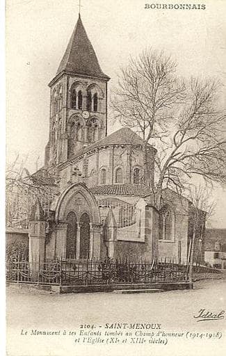POP | Plateforme ouverte du patrimoineBOURBONNAIS - 2104 SAINT-MENOUX - LE MONUMENT A SES ENFANTS TOMBES AU CHAMP D'HONNEUR (1914-1918) ET L'EGLISE (XIe ET XIIIe SIECLES)