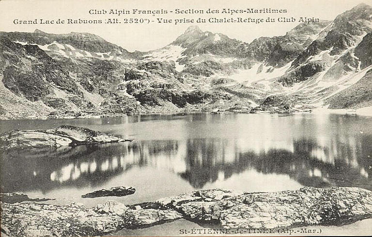 POP | Plateforme ouverte du patrimoineCLUB ALPIN FRANÇAIS - SECTION DES ALPES-MARITIMES / GRAND LAC DE RABUONS (ALTITUDE 2520 M.) - VUE PRISE DU CHALET-REFUGE DU CLUB ALPIN / ST-ETIENNE DE TINEE (ALP.-MAR.)