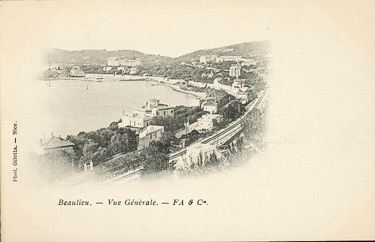 Beaulieu-sur-mer ; paysage (bord de mer, voie ferrée, maison, arbre)