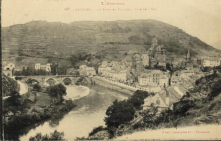POP | Plateforme ouverte du patrimoineL'AVEYRON / 197. - ESTAING. - LE PONT ET LE VILLAGE - VUE DE L'EST (caractères rouges)