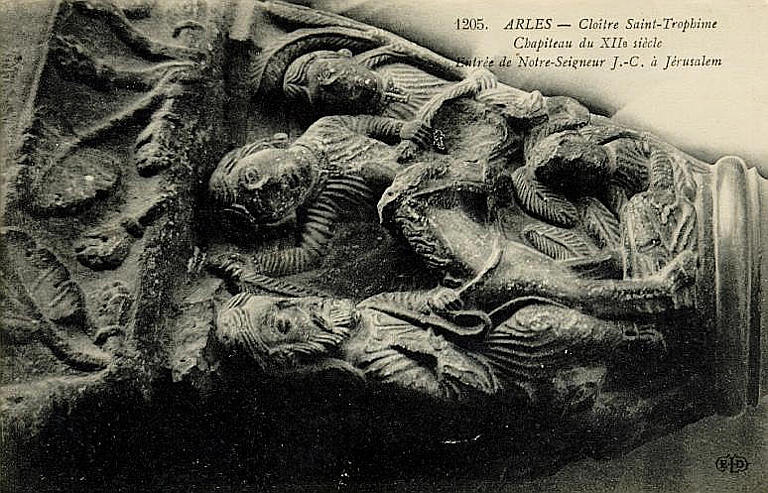POP | Plateforme ouverte du patrimoine1205 ARLES - CLOITRE ST-TROPHIME. CHAPITEAU XIIe SIECLE ; ENTREE DE NS JC A JERUSALEM