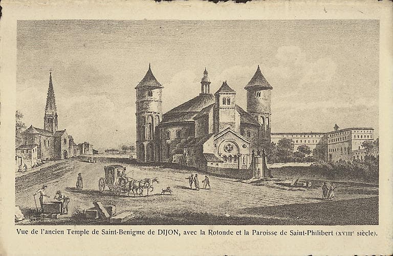 VUE DE L'ANCIEN TEMPLE DE SAINT-BENIGME DE DIJON, AVEC LA ROTONDE ET LA PAROISSE DE SAINT-PHILIBERT (XVIIIE SIECLE)