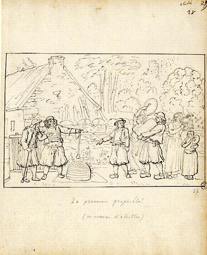 scène (Finistère d, ruche, abeille, jeune homme, famille, matériel de cuisine : bruit, homme, ivresse, cour de ferme, Breton, vêtement)