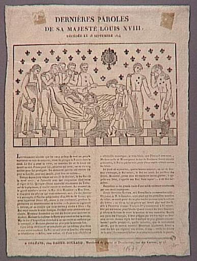DERNIERES PAROLES / DE SA MAJESTE LOUIS XVIII, / DECEDEE LE 16 SEPTEMBRE 1824 (titre inscrit)