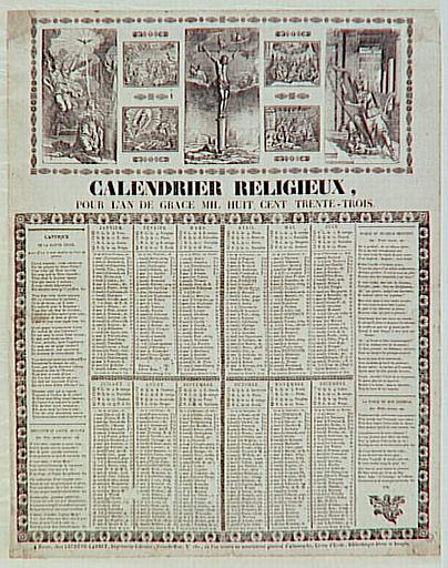 POP | Plateforme ouverte du patrimoineCALENDRIER RELIGIEUX, / POUR L'AN DE GRACE 1833 (titre inscrit)