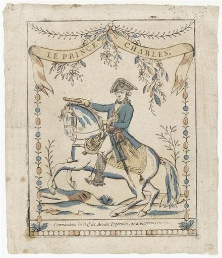 LE PRINCE CHARLES, / COMMANDANT EN CHEF LES ARMEES IMPERIALES, NE A FLORENCE, EN 1771. (titre inscrit)