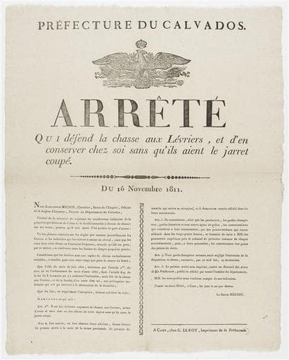 POP | Plateforme ouverte du patrimoineARRETE / QUI DEFEND LA CHASSE AUX LEVRIERS.. (titre inscrit)