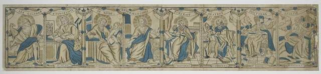 LES QUATRE / EVANGELISTE DE NOTRE, / SEIGNEUR, JESUS CHRIST. / PORTRAIT / DES QUATRE / DOCTEURS / DE LEGLISE (titre inscrit)