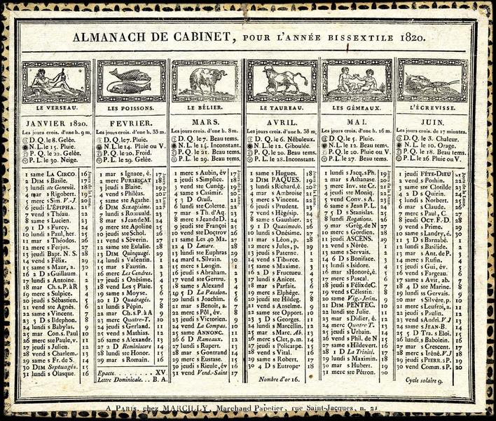 [calendrier] ; A Paris, chez MARCILLY, Marchand Papetier, rue Saint-Jacques, n. 21 (b. m.)