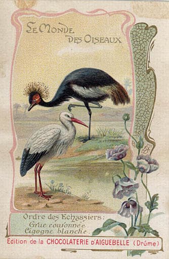 LE MONDE DES OISEAUX / Ordre des Echassiers / Grue couronnée / Cigogne blanche(titre inscrit) - POP