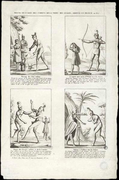 POP | Plateforme ouverte du patrimoineMOEURS ET USAGES DES INDIENS DE LA TRIBU DES OSAGES, ARRIVÉS EN FRANCE en 1827 (titre inscrit)