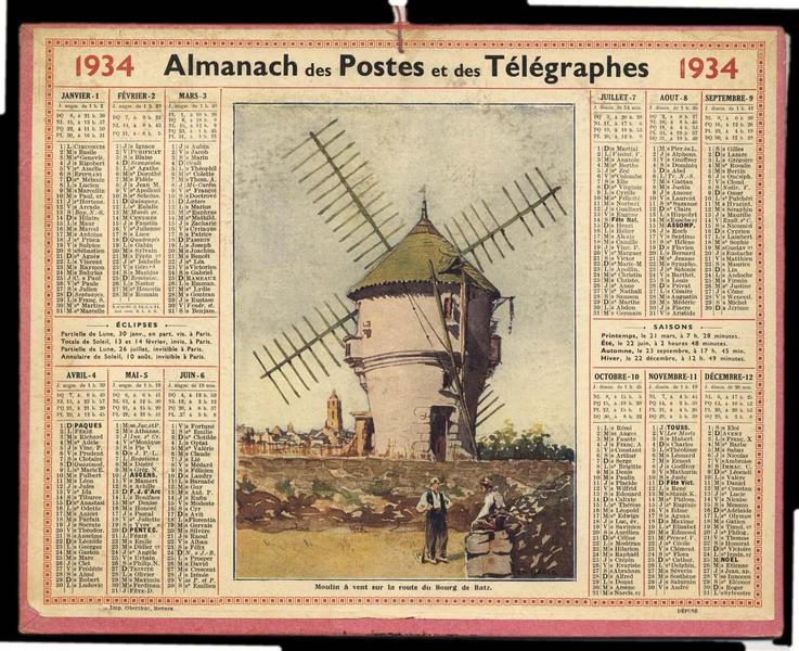 POP | Plateforme ouverte du patrimoineAlmanach des Postes et des Télégraphes / Moulin à vent sur la route du Bourg de Batz (titre inscrit)