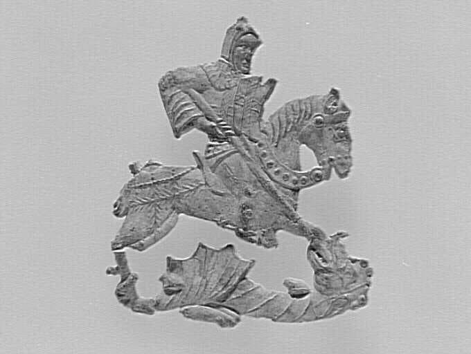 Cl. 18006 Enseigne : saint Georges terrassant le dragon ; Cl. 4721 Enseigne de pèlerinage : saint Georges ; Rouen, M.A., Enseignes de pèlerinage : st Georges