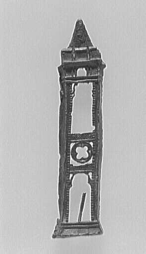 Fragment d'enseigne de pèlerinage : tour ajourée