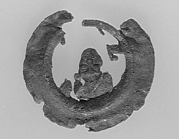POP | Plateforme ouverte du patrimoineENSEIGNE DE PELERINAGE : TETE AU CENTRE D'UN CADRE CIRCULAIRE AJOURÉ