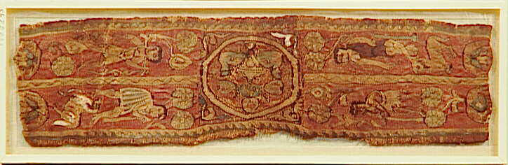 (?), 'Musée de Cluny, achats et dons de tissus', in Bulletin des Musées de France, février 1935, p. 20 (p. 20) ; (?), 'Musée de Cluny', in Bulletin des Musées de France, novembre 1935, p. 148 (p. 148) ; Pfister (R.), 'Matériaux pour servir au classement des textiles égyptiens postérieurs à la conquête arabe', in Revue des arts asiatiques, t. X, fasc. I-II, Paris, 1936 (p. 73) ; Brett (G.), 'The Brooklyn Textiles and the Great Palace Mosaic', in Coptic Studies in Honor of Walter Edwing Crum. Bulletin of the Byzantine Institute, II, 1950, p. 433-441 (pl. VII-I, p. 433-441) ; IIIe festival d'Anjou, musée d'Angers, 1977 Auteurs : Du Bourguet et Gremont (n° 16, p. 26-27) ; LORQUIN (Alexandra). - Les tissus coptes au musée national du Moyen Age : catalogue des étoffes égyptiennes de lin et de laine de l'Antiquité tardive aux premiers siècles de l'Islam. - Paris : Réunion des musées nationaux, 1922. - 395 p. : ill. ; 27 cm. Cluny [Usuel] (n° 30, p. 112-115)