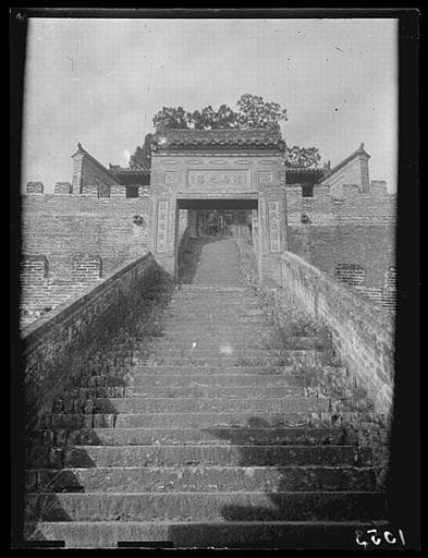 [Shaanxi]. [Zhichuan], milieu des escaliers accédant au temple funéraire de Sseu-ma Ts'ien [Sima Qian] - POP