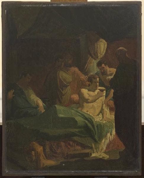 Les dimensions, la facture et le sujet laissent supposer qu'il peut s'agir d'une esquisse de concours de l'Ecole des Beaux-Arts. Fréquent au XIXe siècle, ce sujet fut notamment celui de l'épreuve finale du Prix de Rome de 1846, date que l'on peut retenir pour des raisons stylistiques. Parmi les candidats de ce concours figure Félix Théodore Tourte (1822 - ?). Les visages plutôt réussis et la silhouette de Philippe se découpant bien sur le fond rappellent le style de cet artiste mais ses esquisses très dessinées sont différentes (J. Montchal, communication écrite, mars 2015).