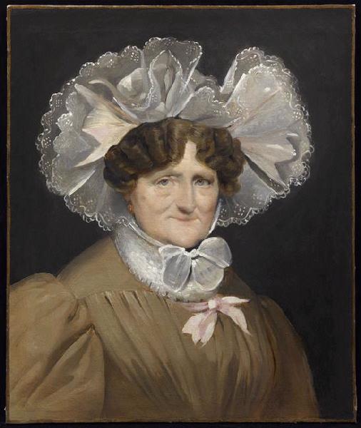 A. Pougetoux propose de dater entre 1825-1835 (communication orale, décembre 1999). J. Magnin a proposé de reconnaître, dans ce portrait, celui de la reine Marie-Amélie (1782-1866) puis celui de Madame Adélaïde (1777-1847), soeur de Louis-Philippe. Ni l'une ni l'autre de ces éventuelles identifications ne peuvent être conservées. Renée Davray-Piekolek (communication écrite, 26 mars 2012) date ce portrait entre 1826-1827 et 1831. Le bonnet, tout en coques de rubans ou de dentelle, est caractéristique des années autour de 1830, de même que les manches qui ont déjà un volume important, plutôt un peu avant 1830 à cause de la collerette en fraise, survivance des années 1820. On peut rapprocher cette peinture du portrait de Mme Dobrée conservé au musée Dobrée de Nantes, daté de 1833, mais sans collerette en fraise. Une datation vers 1825-1835 semble donc la plus prudente. Elle observe par ailleurs qu'on emploie plutôt que coiffe le terme de bonnet, généralisé au XIXe siècle pour tous les couvres chefs d'étoffe.