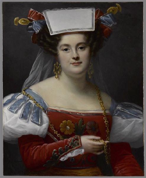 La Comédie-Française conserve une série de portraits de comédiens par Adèle Romany. Celui-ci représente la cantatrice Zoé Prévost (1802-1861) dans le rôle de Zerline, personnage de l'opéra-comique d'Auber Fra Diavolo, créé en 1830 (Barthet, 1984, p. 130). M. Magnin posséda auparavant un autre Portrait de femme (Magnin, 1922, II, n° 450, repr.), dont il se dessaisit après 1926, date à laquelle il prêta le tableau à l'exposition des Femmes peintres du XVIIIe siècle (galerie Charpentier, juin 1926, n° 83). L'oeuvre est passée sur le marché de l'art parisien en 1942 puis en 1966 (Palais Galliera, 03/12/1966, n° 23, repr.). Ce tableau est très probablement celui qui figura au Salon de 1831 sous le N° 556 Salon de 1831 : DE ROMANCE ROMANY Mlle P., costume de Zerline (opéra de Fra Diavolo)