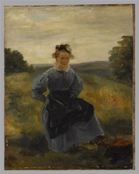 Jeune Fille assise dans une prairie ; Jeune Dessinatrice vêtue de bleue assise dans une prairie (ancien titre)