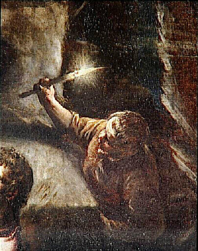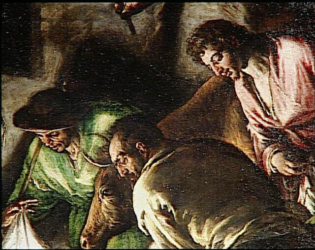 Le professeur A. BALLARIN, de l'Université de Padoue, lors d'une visite au château de Fontainebleau le 4 janvier 1997, attribua ce tableau à Girolamo BASSANO, vers 1580, lorsqu'il travaillait avec ses frères dans l'atelier de leur père Jacopo. Il existe une oeuvre de la même période au Palazzo Rosso à Gênes. Depuis la restauration de l'oeuvre en 1997-1998, ce tableau a de nouveau été attribué au père, Jacopo Bassano ; Collection de Marc du Houssay, ambassadeur de France à Venise (1648) ; Collection de Jabach qui le vend à Louis XIV en 1671 ; 1930 : Chapelle de la Trinité ; 1683 : tableau octogonal (130 x 102) ; 1695 : Paillet mentionne qu'il a été agrandi et réduit en forme carrée 1709 : 143 x 107