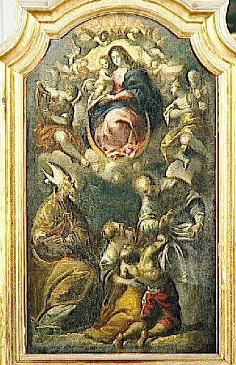 scène biblique (Jésus guérissant, délivrance de possédé, Vierge à l'Enfant, dans les airs, ange)
