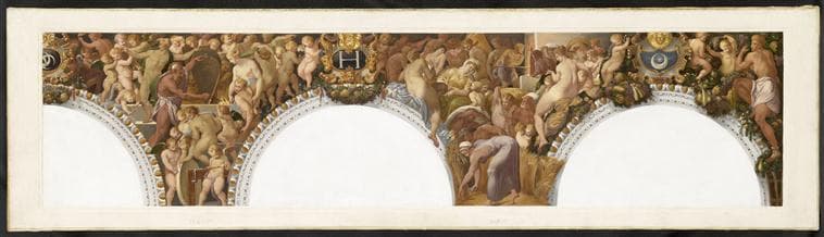 Esquisse (ricordo) d'après les fresques de la salle de Bal restaurées par l'artiste ; Dans un même cadre avec 'Vulcain'