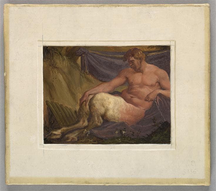 Esquisse (ricordo) d'après les fresques de la Salle de Bal restaurées par l'artiste ; Dans un même cadre avec : Deux hommes dont un tient une torche, Pomone ?, Esculape ? et un autre homme, un serpent et un bâton à côté d'eux, L'Abondance