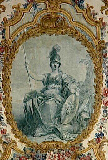 en 1751 - 1753, Louis XV charge les peintres Carle Van Loo, Jean-Baptiste Pierre et Alexis Peyrotte de réaliser un nouveau décor pour la Salle du Conseil ; les boiseries sont ornées d'allégories peintes en camaïeu bleu pour Carle Van Loo et camaïeu rose pour Jean-Baptiste Pierre