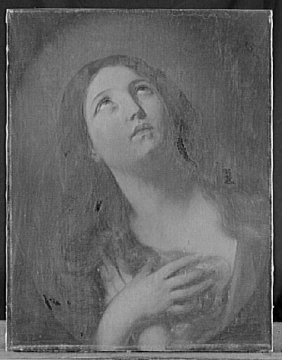 copie d'après la Madeleine en prière (Inv 529) de Guido Reni exposée au Louvre jusqu'en 1950 et aujourd'hui conservée au château de Versailles ; commandé à Senties et payé 600 frs en 1826 ; placé à une date indéterminée au musée national du château de Fontainebleau
