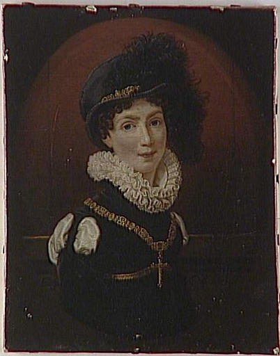 portrait (Leuchtenberg Amélie de, princesse, femme, chapeau : plume, col)