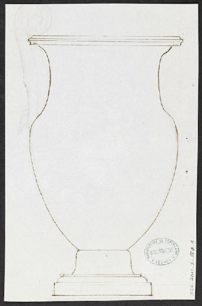 Forme de vase à rapprocher de celui du vase Cordelier. Profil extérieur et moulurations. Une anse haute à médaillon est esquissée au crayon à gauche